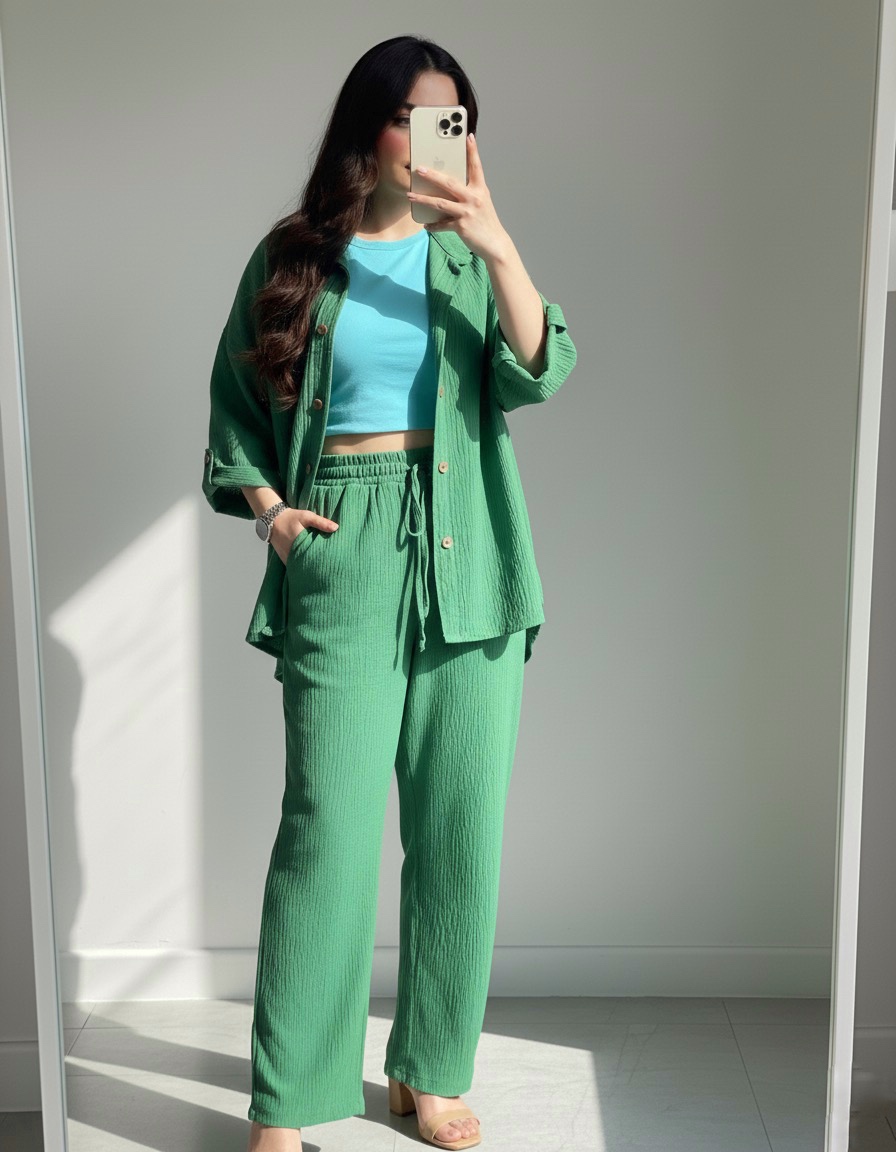 ست شومیزمانتویی و شلوار سبز زنانه کد ۲۹۶۶۹۸٬۰۰۰ 28%