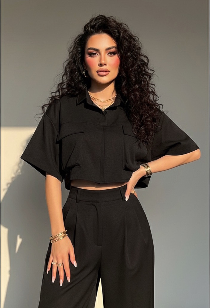 ست کراپ آستین کلوش و شلوار کد ۳۱۷