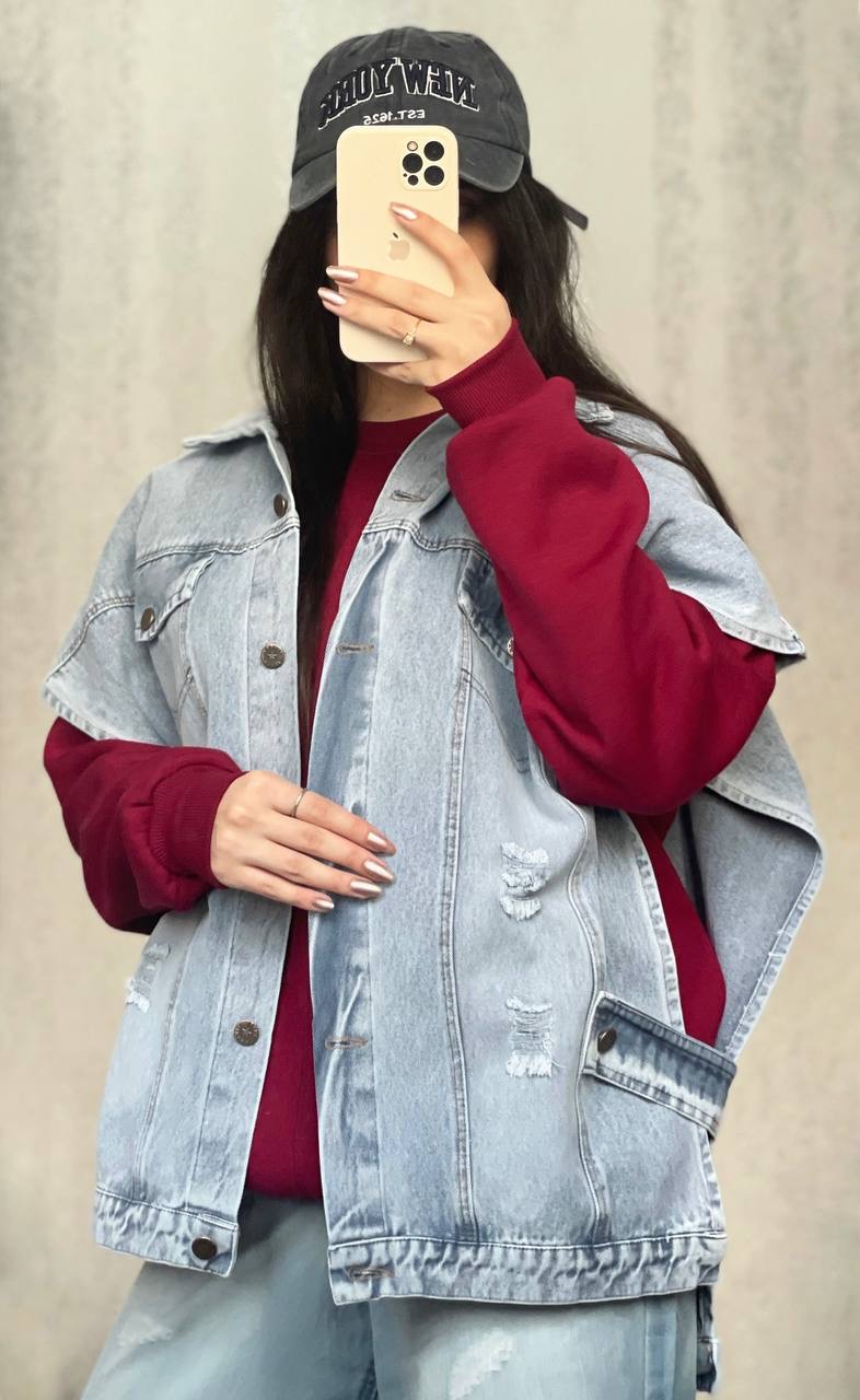 کاپشن جین کلاهدار داخل خز اسپرت کد ۵۲۵