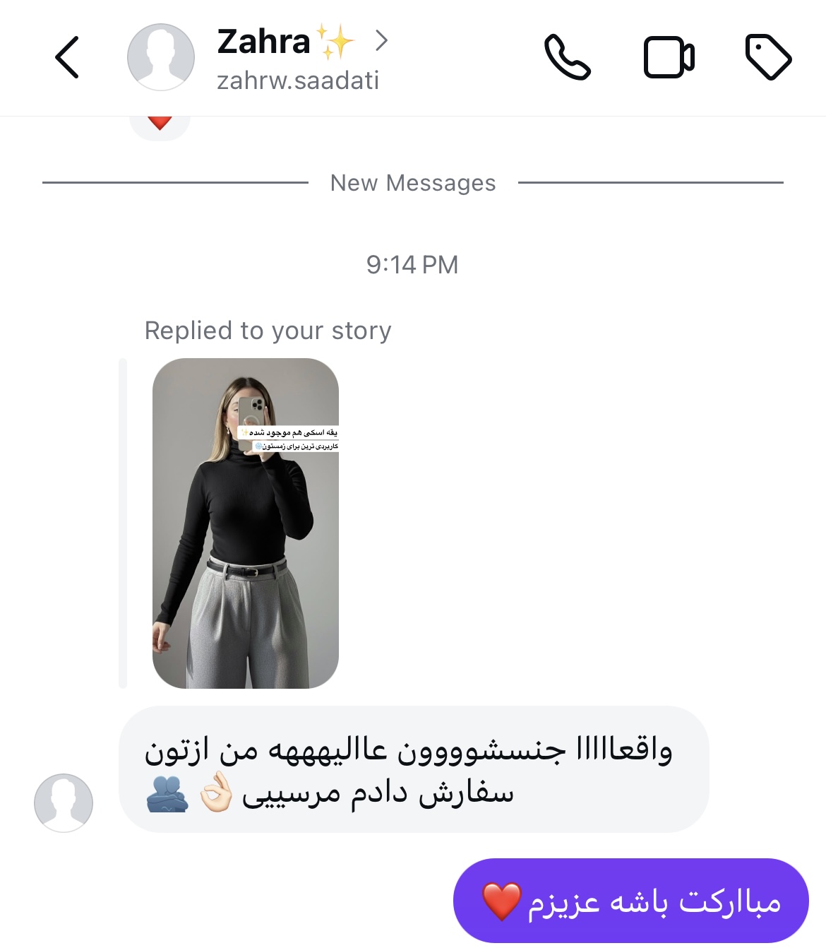 نرگس از مشهد: پشتیبانی واتساپ خیلی سریع جواب داد و راهنمایی کرد. تجربه خرید عالی بود🌹