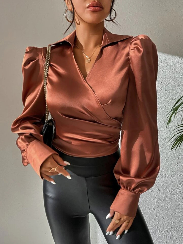 شومیز مجلسی ساتن یقه چپ و راستی گره ای کد ۱۷۳