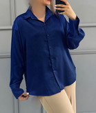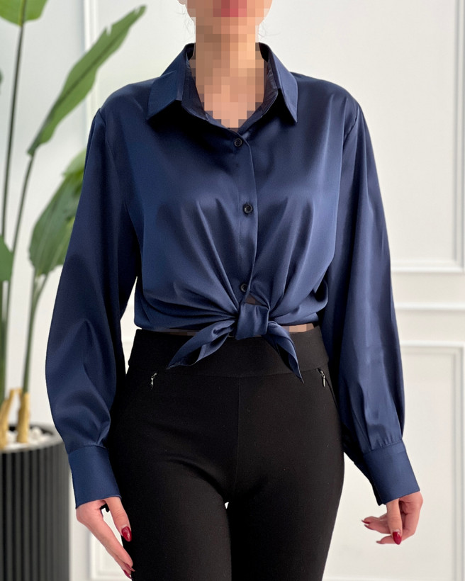 شومیز ساتن سورمه ای زنانه کد ۲۲۲