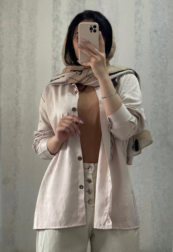 شومیز مانتویی بیسیک کرم کد ۲۲۵