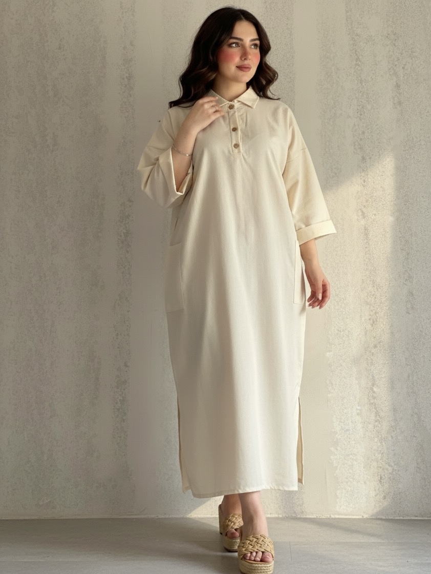 کفتان لینن کمربند دار زنانه کد ۲۳۰
