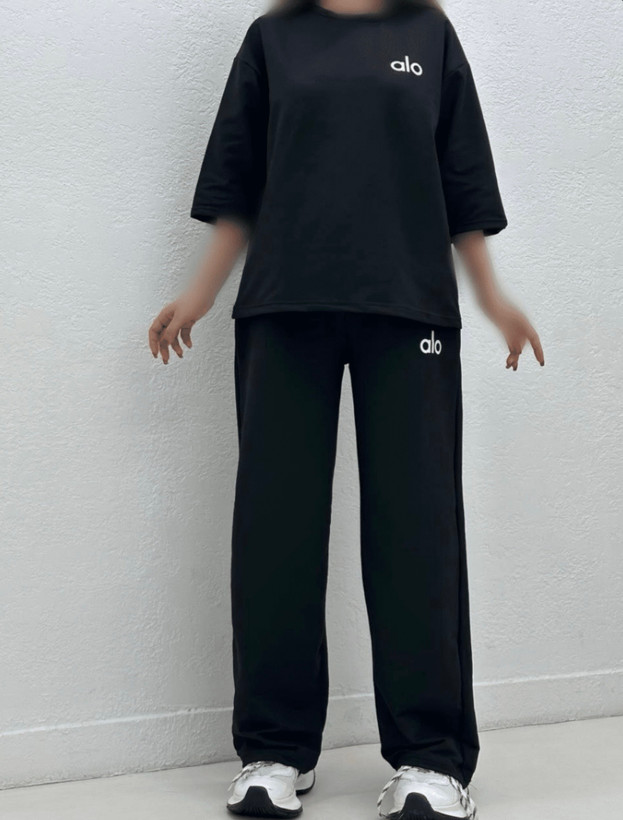 ست تیشرت باکسی + شلوار اسپرت alo کد ۲۳۴