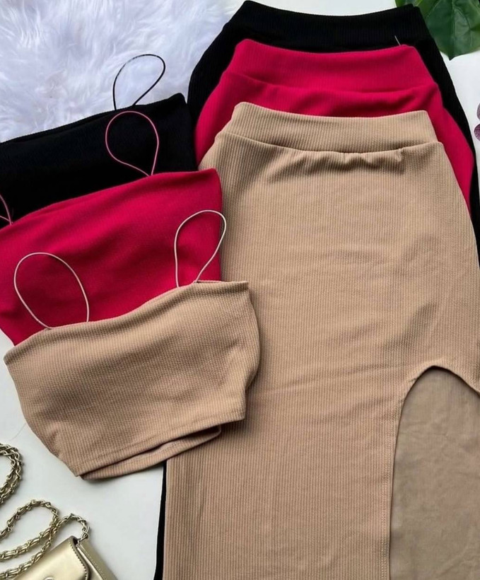 ست کراپ تاپ و دامن چاکدار زنانه کد ۲۸۵