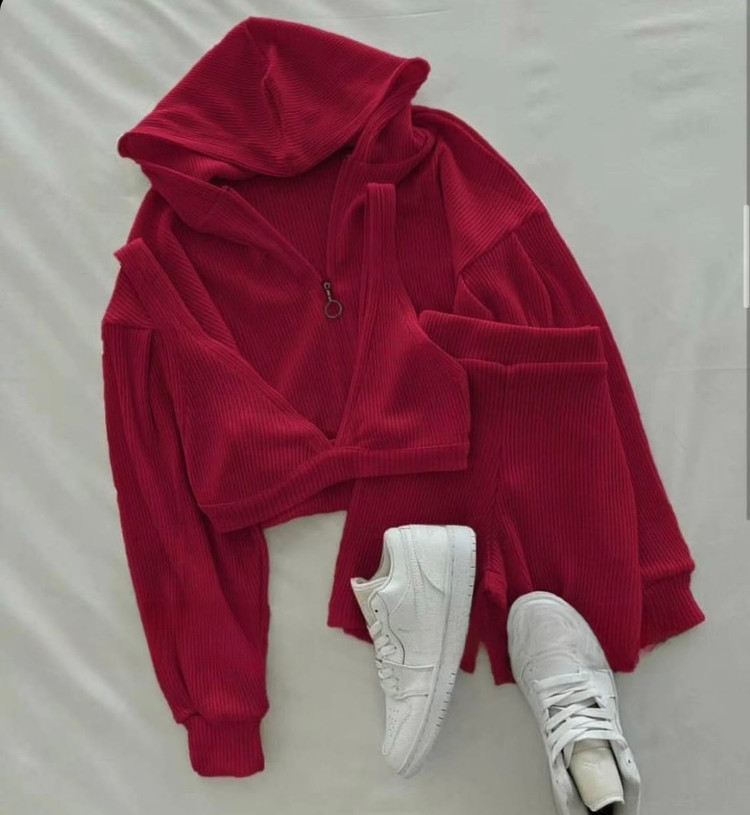 ست سه تیکه کراپ شلوارک و سویشرت زنانه کد ۳۵۳