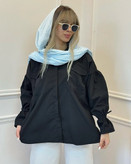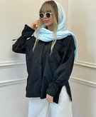 شومیز مانتویی آستین شکلاتی مشکی کد ۴۱۱