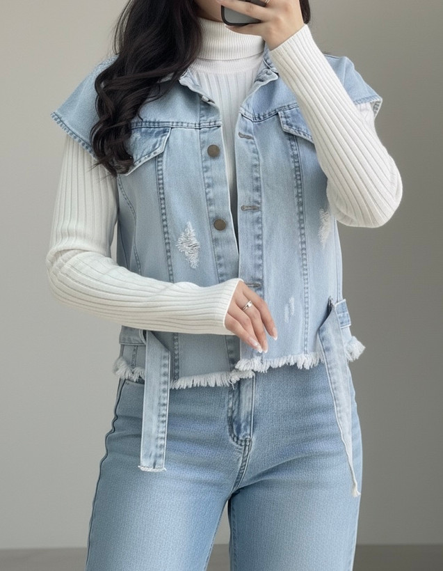 کراپ وست جین کمربند دار زنانه کد ۶۰۱