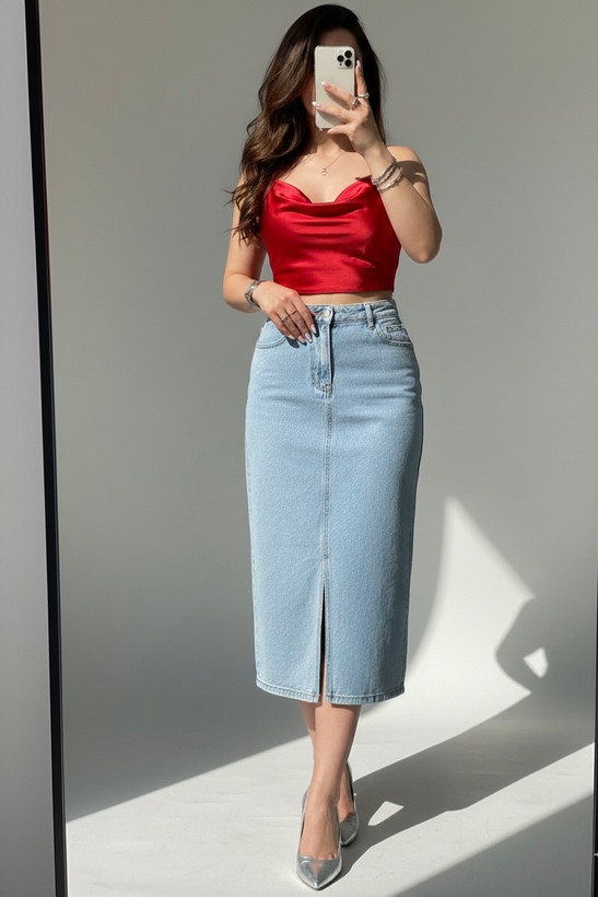 دامن جین آبی زنانه کد ۶۰۹