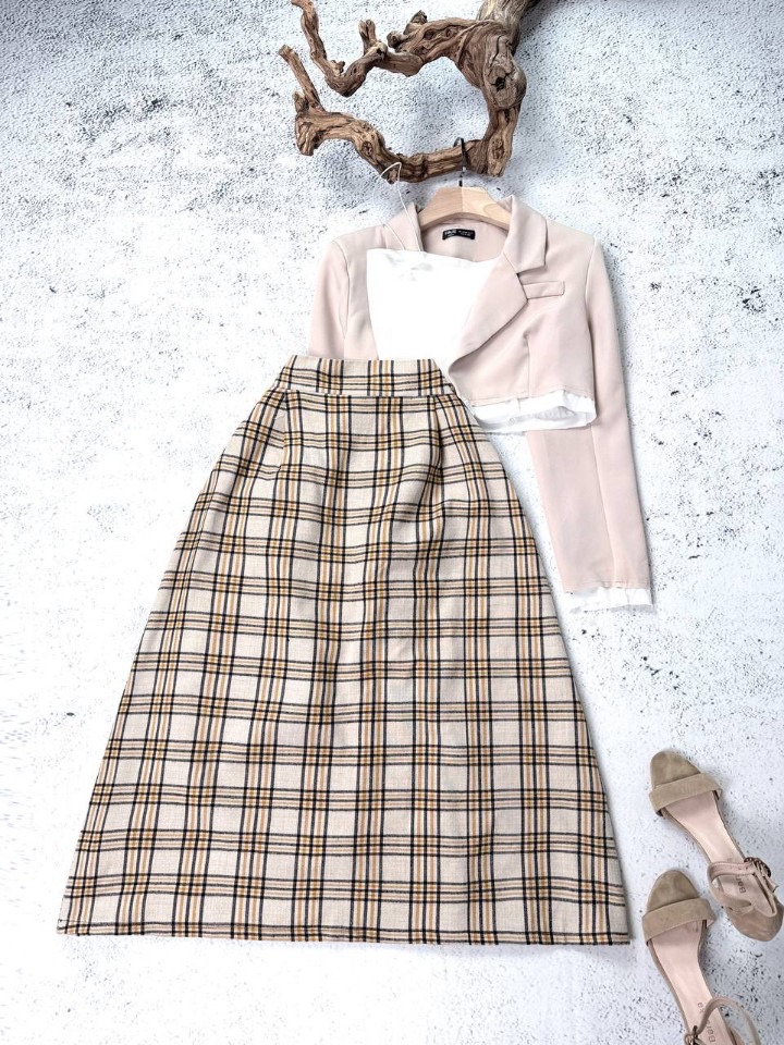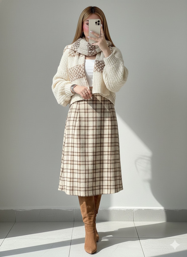 دامن چهارخونه پشمی پاییزه کد ۶۴۴