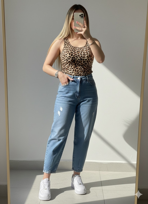 شلوار جین مام آبی زنانه کد ۶۵۴