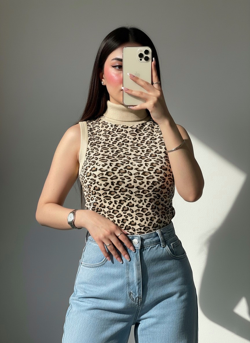تاپ پلنگی یقه اسکی کد ۶۶۰