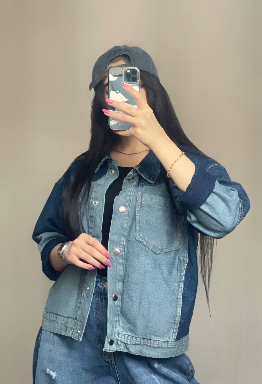 کراپ کت جین ترکیبی زنانه کد ۸۶۲