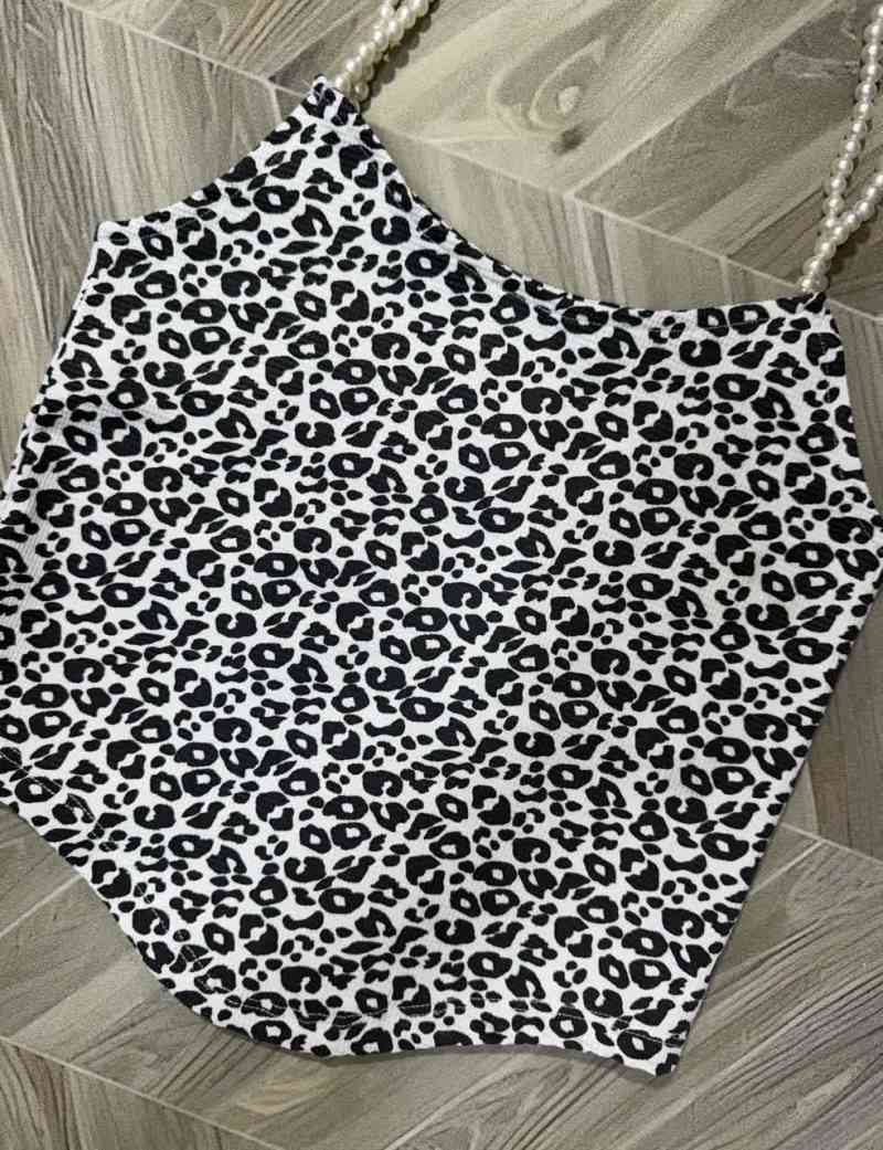 تاپ پلنگی بند مرواریدی زنانه کد ۸۷۳